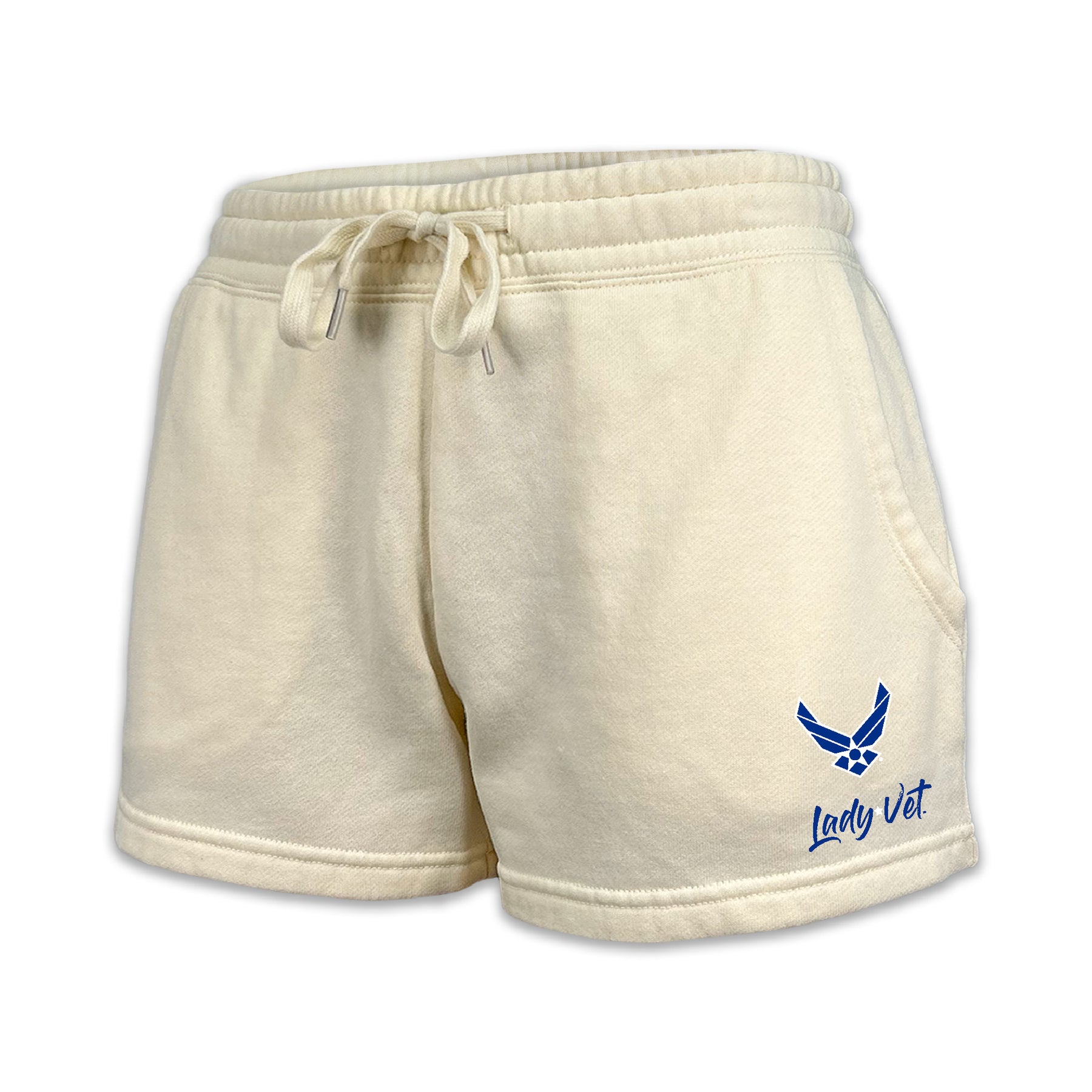 Embrace comfort and style with our Air Force Lady Vet Ladies Fleece Shorts! Made with a soft cotton blend fleece, these classic-fit shorts feature an elastic waistband with drawcord and jersey-lined pockets, perfect for casual wear and showing your Air Force pride!