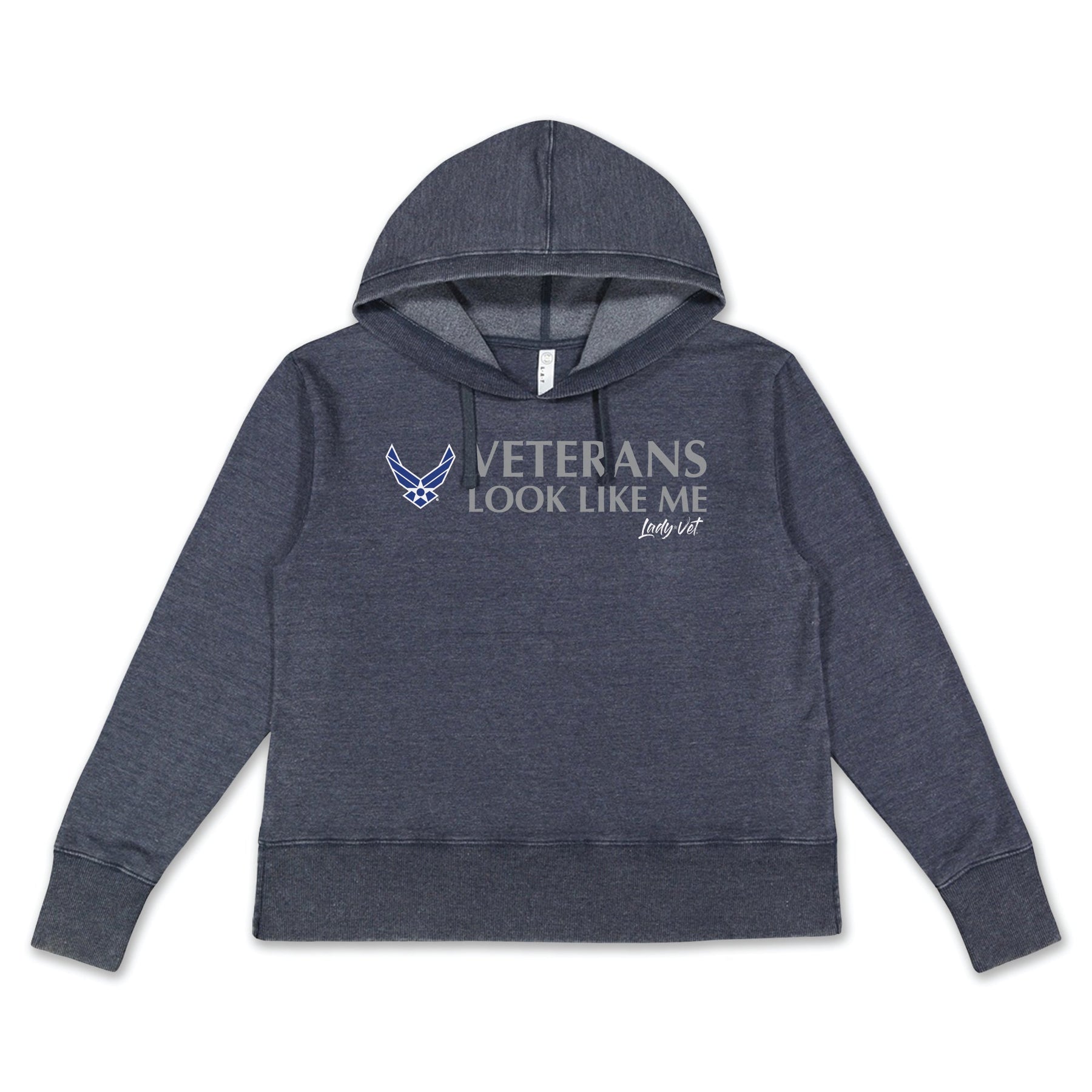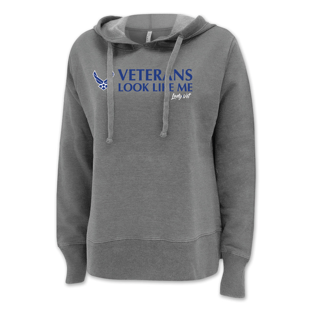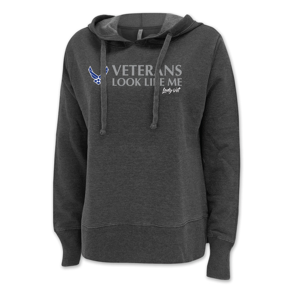Lady Vet is a woman-owned, Veteran-owned brand created specifically to challenge public assumption of what a Veteran looks like. Show your support or wear it proudly with the Air Force Vet Looks Like Me Ladies Hood!