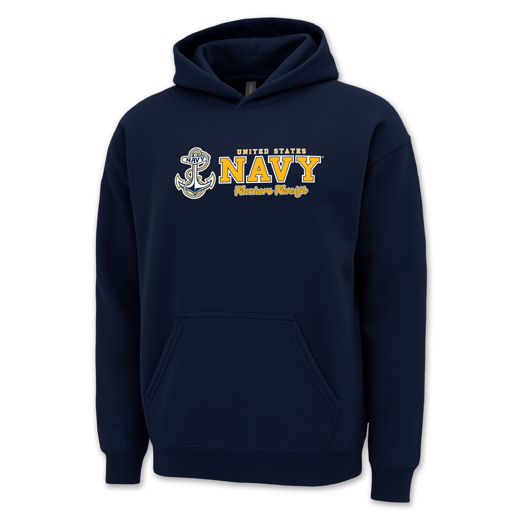 Say it loud, Say it proud with the United States Navy Anchors Aweigh Logo Hood! Get back to basics with this comfy sweatshirt, sure to become one of your favorites!