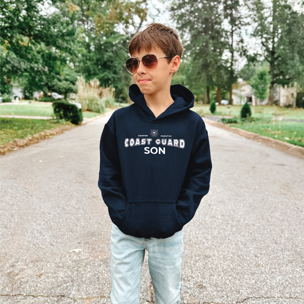 Show everyone how proud you are to represent your parent in the Coast Guard with the Coast Guard Son Youth Hood!