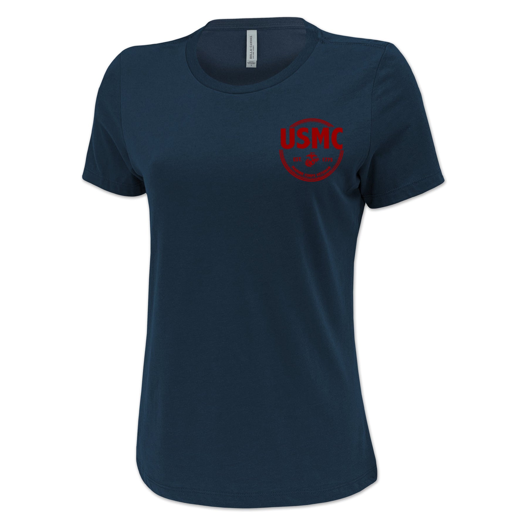 This Marines Veteran Left Chest Ladies T-Shirt is a tribute to the brave women who have served in the Marine Corps. Featuring an all new design on the left chest, this shirt combines style and patriotism to honor the service and sacrifice of female Marines vets with a comfortable and expressive piece of apparel.