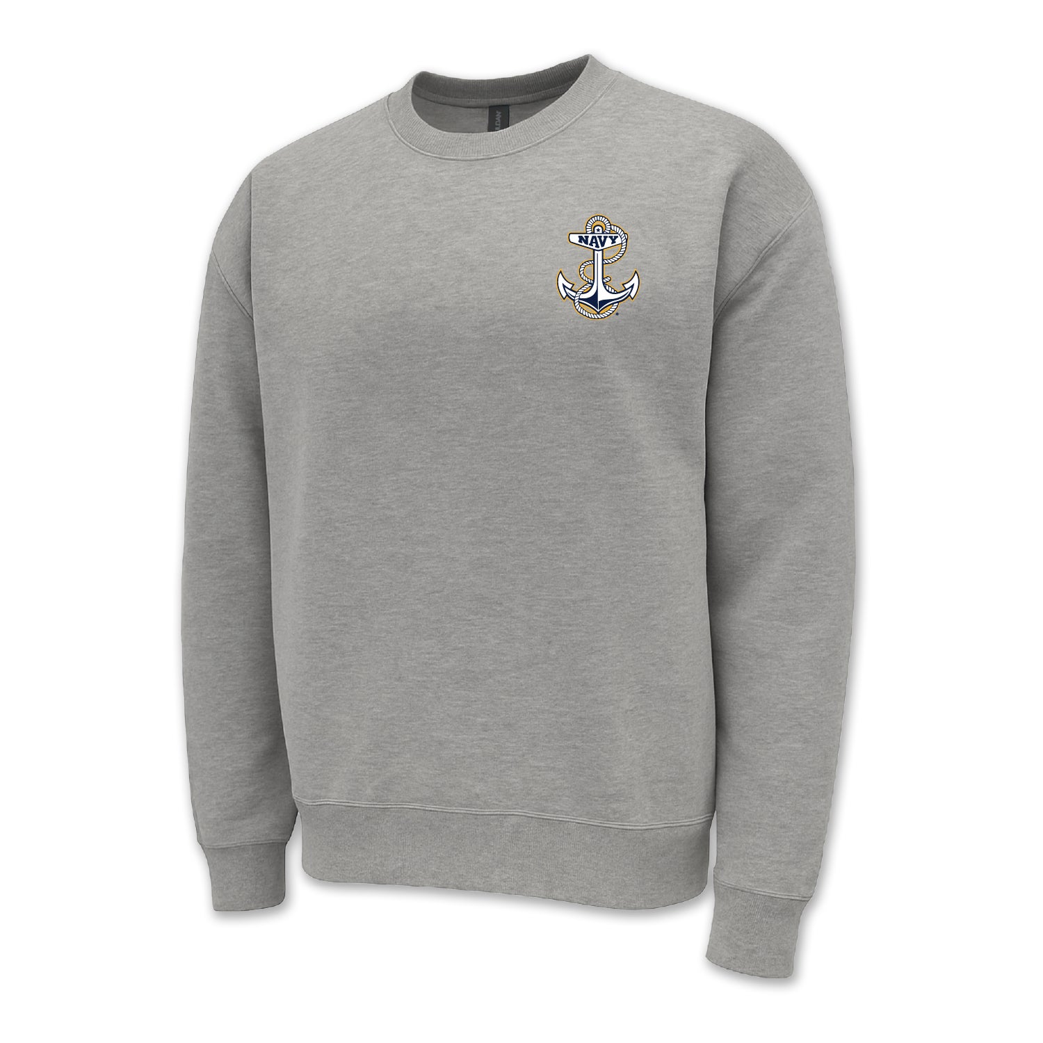 Your Navy collection won't truly be complete until you add this great Navy Anchor Logo Crewneck!