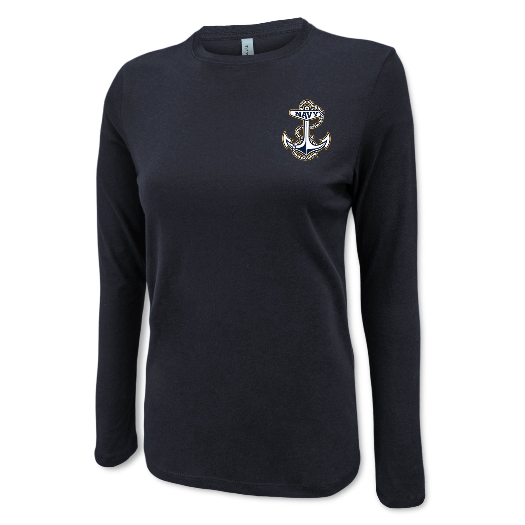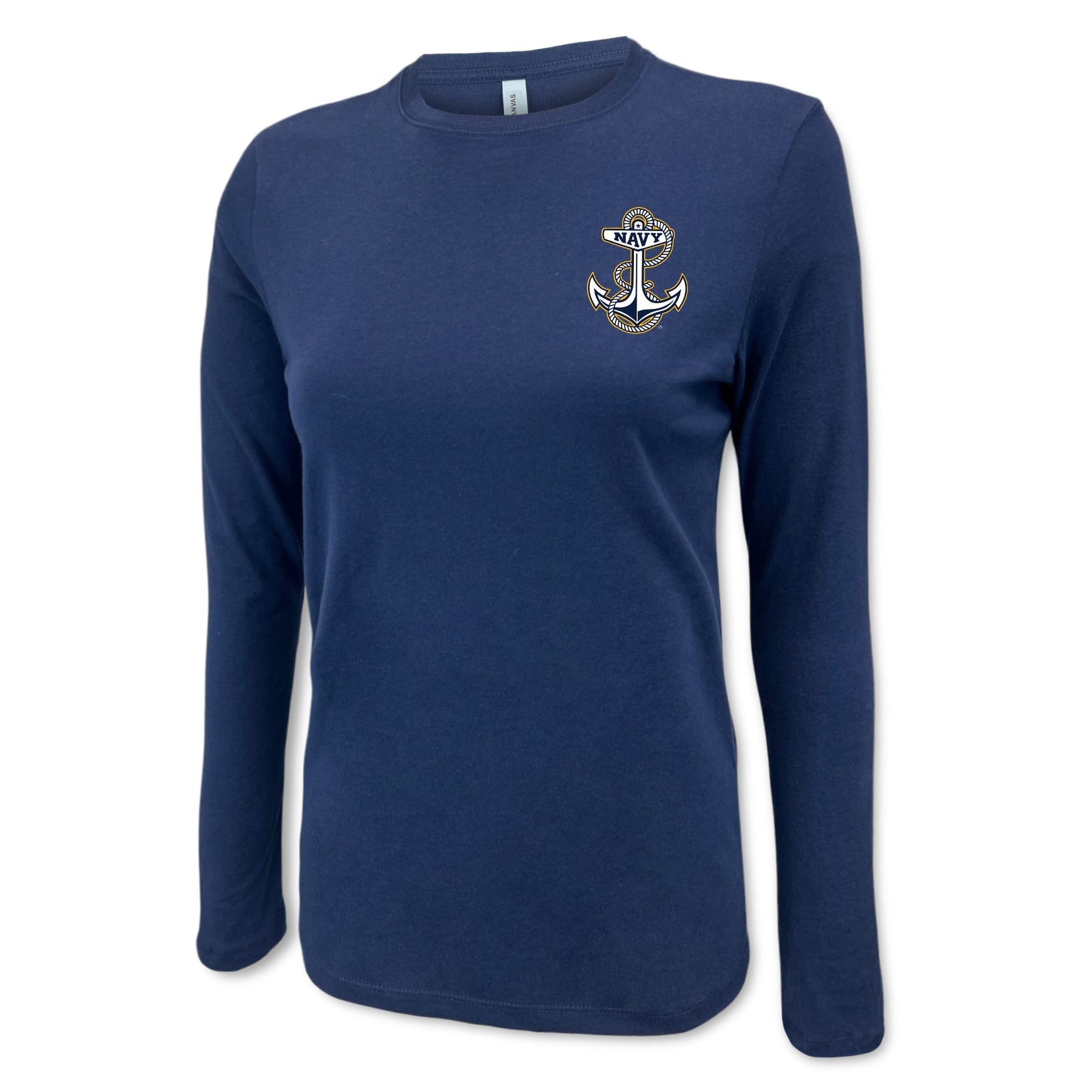 Stay stylishly comfortable with the Navy Anchor Ladies Long Sleeve T-Shirt. Crafted from premium cotton blend fabric, it features the iconic Navy Anchor design, perfect for showcasing your pride and support. Whether you're hitting the gym or running errands, this shirt offers both style and durability for everyday wear!
