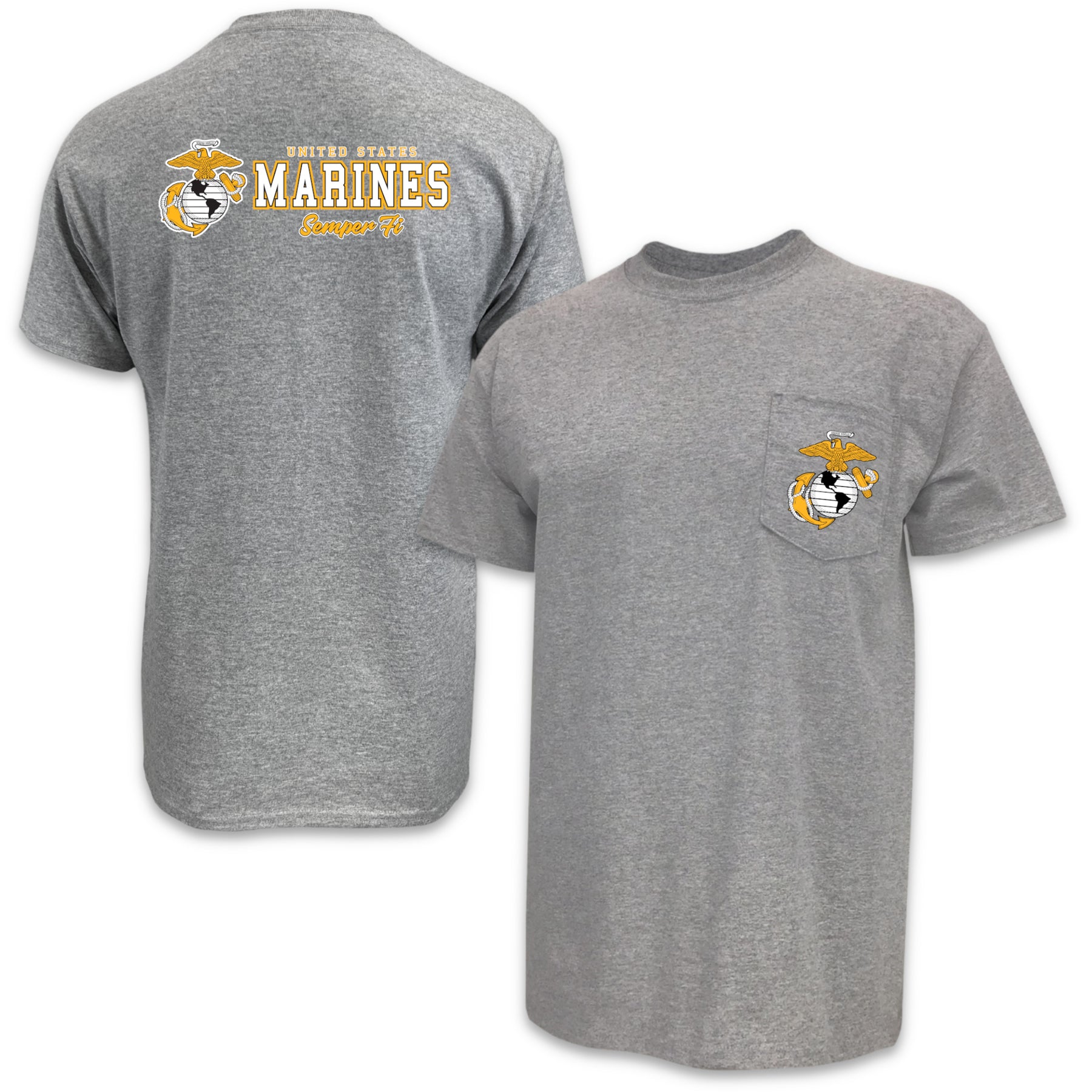 This Marines Mens Pocket Duo T-Shirt merges two of our most popular designs to create a new must-have tee. Made with premium materials, the Marines Mens Pocket Duo T-Shirt is a great addition to your Marine Corps collection!