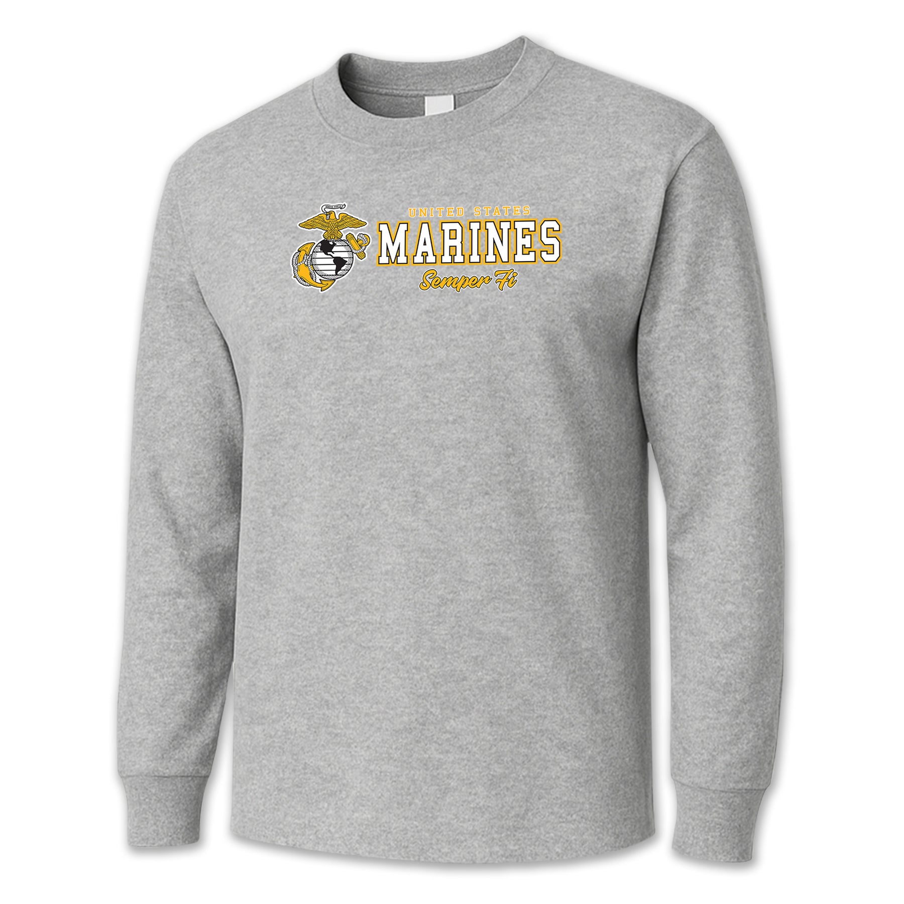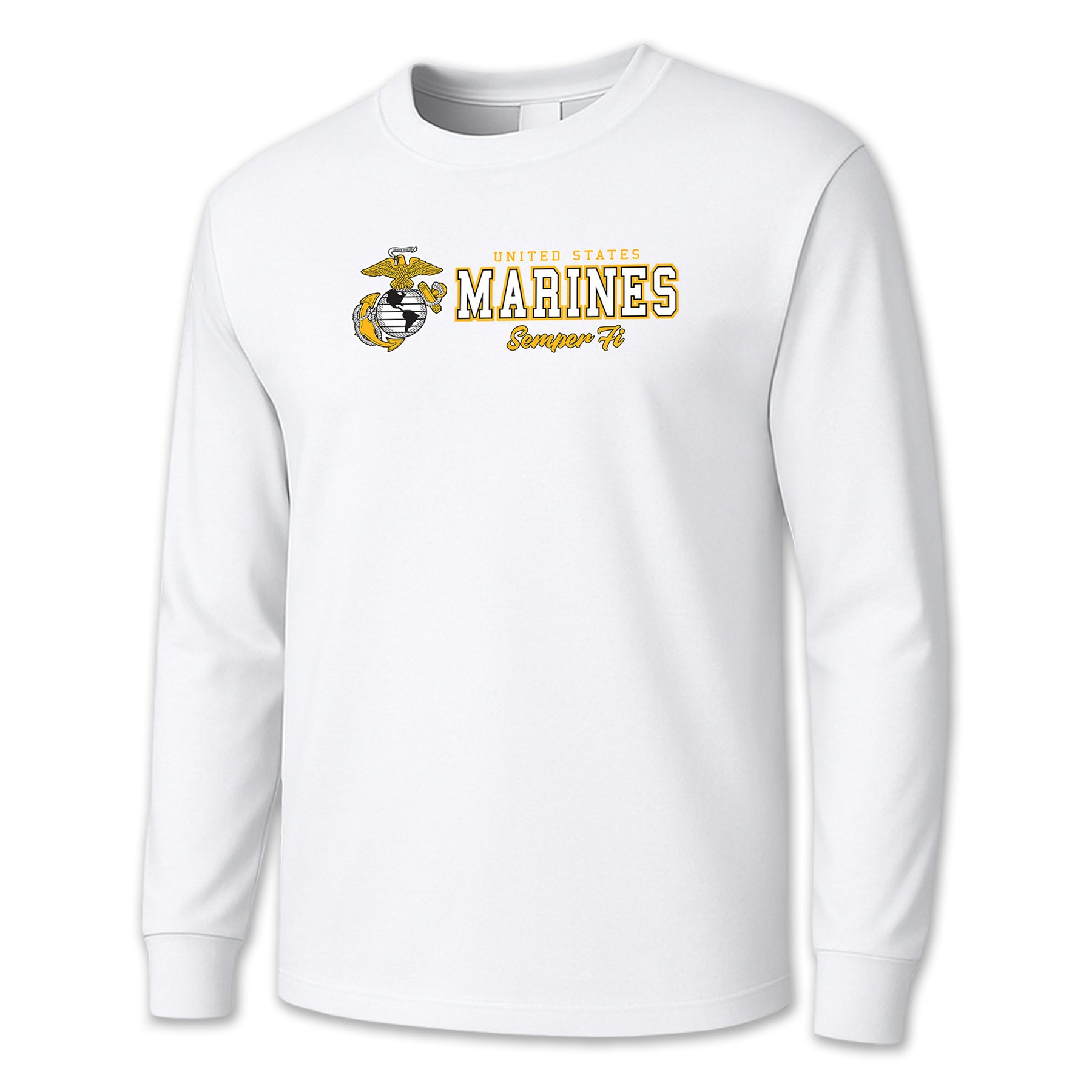 Say it loud, Say it proud with the United States Marines Semper Fi Logo Long Sleeve T-shirt! Get back to basics with this Preshrunk jersey knit long sleeve tee, great on it's own or for layering!
