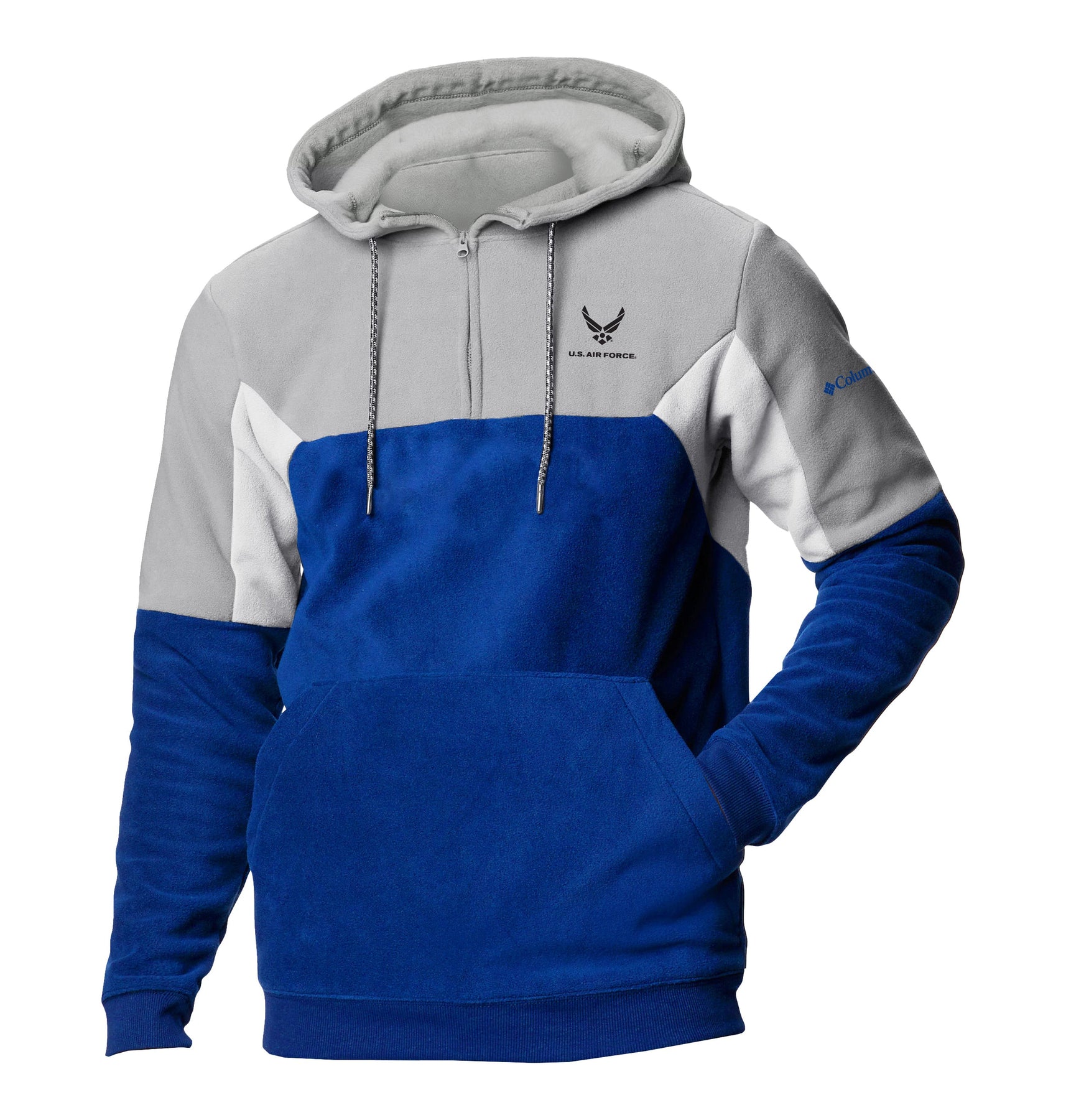 Stay cozy in the Air Force Wings Columbia Lodge Fleece Hoodie! Crafted with 100% polyester microfleece and anti-pill fabric, this hoodie offers lasting softness and warmth. Featuring a drawcord adjustable hood, kangaroo pocket, and comfort rib at the cuffs and hem, it’s the ultimate combo of comfort and Air Force pride for cooler days.