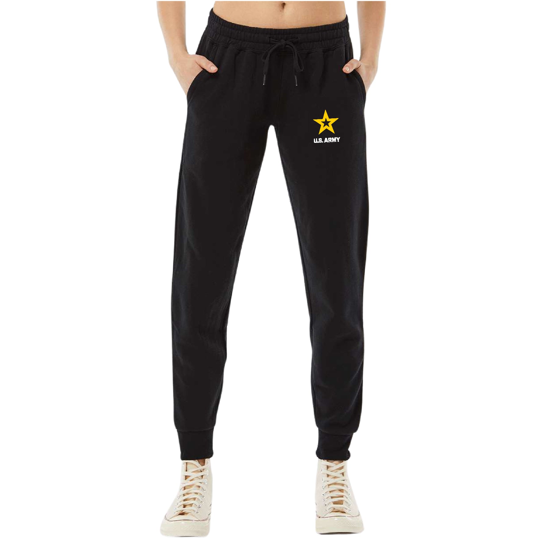 Stay cozy and stylish with our Army Star Ladies Sweatpants! These classic-fit pants feature a soft cotton blend fleece, elastic waistband with drawcord, and ribbed ankle cuffs—perfect for showing your Army pride in comfort!