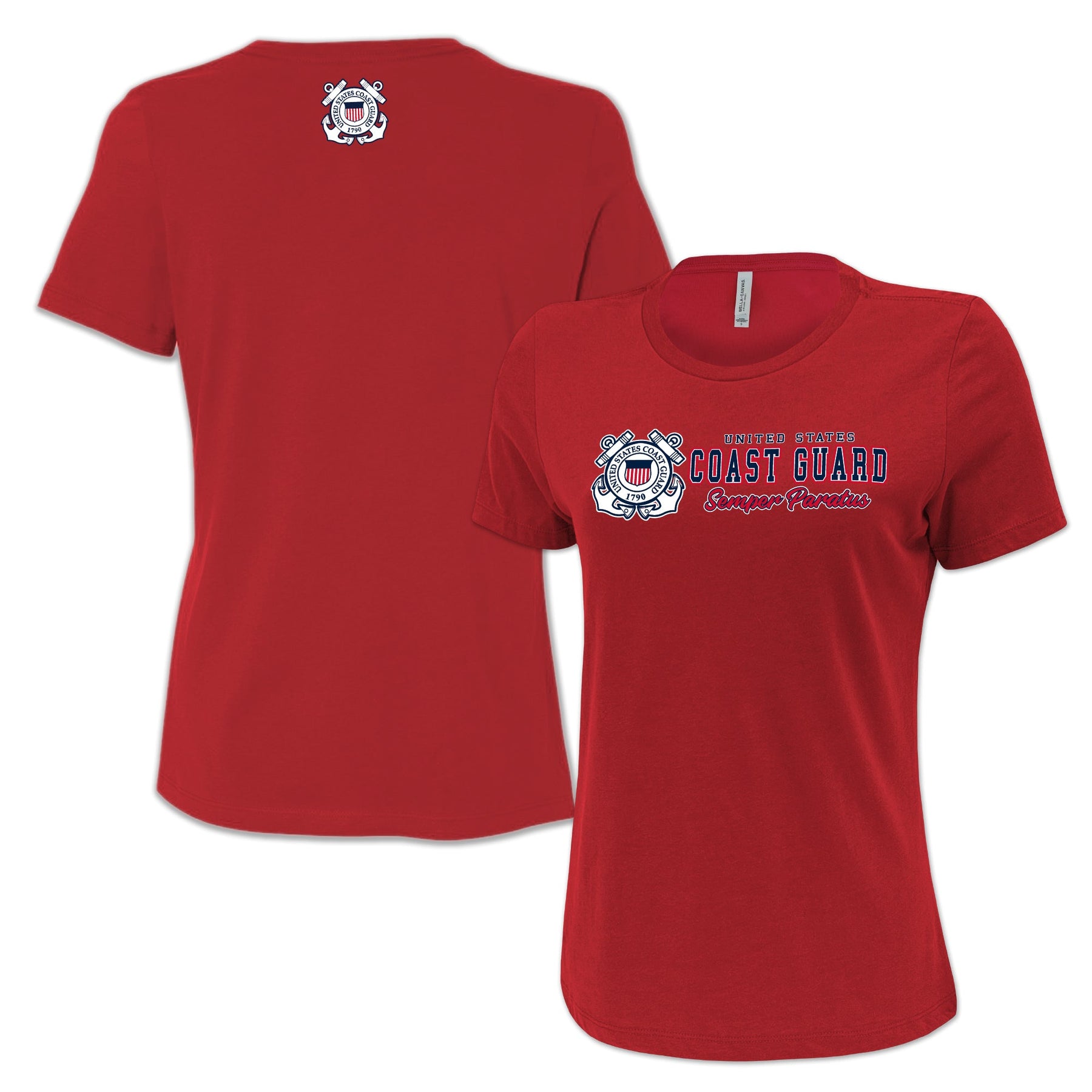 This Coast Guard Ladies T-Shirt merges two of our most popular designs to create a new must-have tee. Made with premium materials, the Coast Guard Ladies Two-Sided Tee is a great addition to your Coast Guard collection!