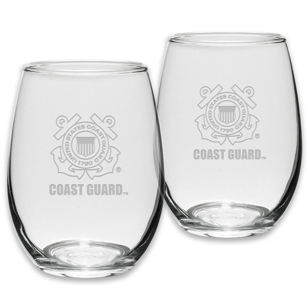 Elegant and versatile, the Coast Guard Seal Set of Two 21oz Stemless Wine Glasses make a great gift or addition to your glassware collection!