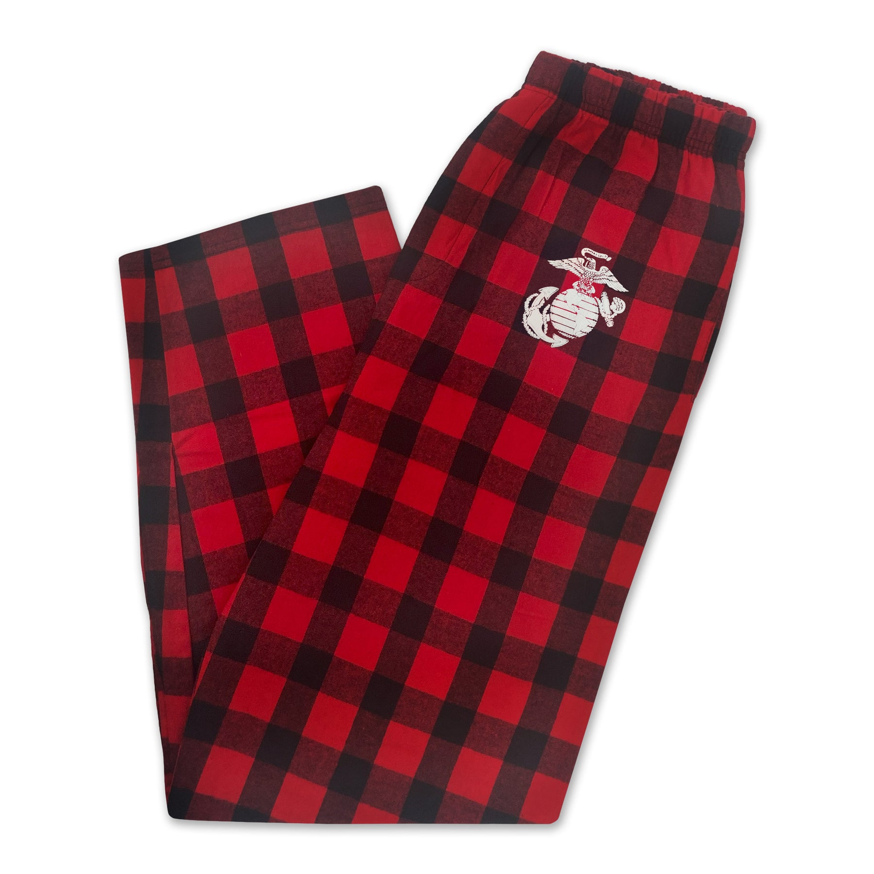 Wrap yourself in holiday comfort with the Marines EGA Holiday Flannel Pants. Made from soft cotton flannel in a festive plaid, these relaxed-fit pants pair seasonal style with everyday coziness. Featuring the iconic Marines EGA, they’re perfect for lounging, gifting, or celebrating the season in comfort.