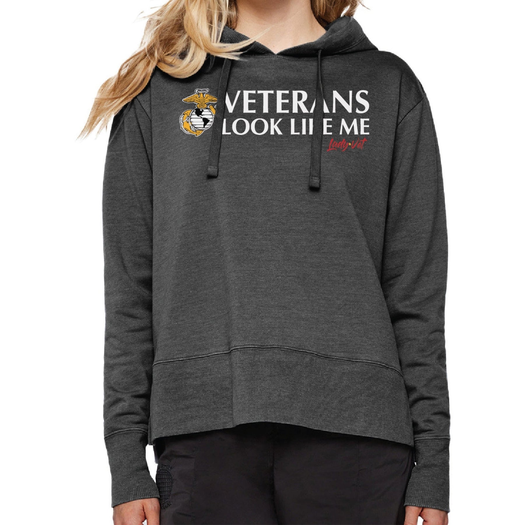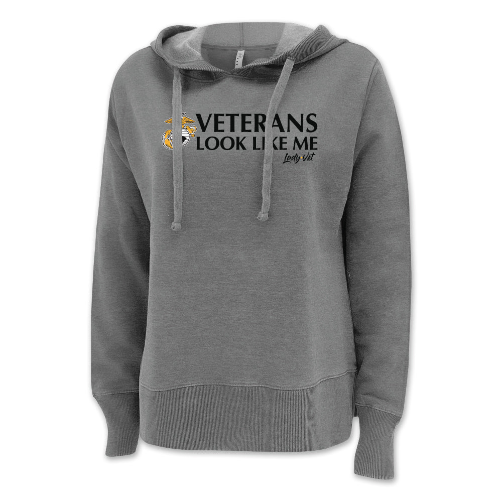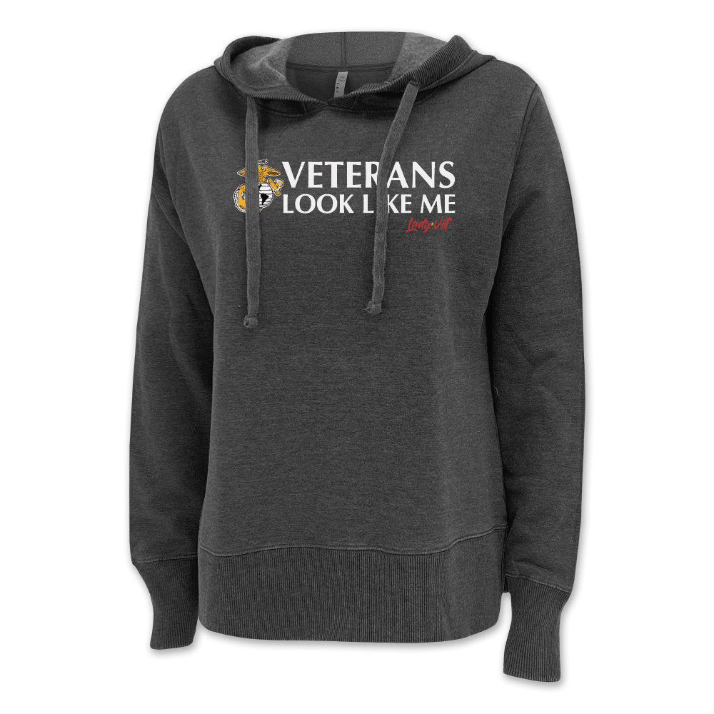 Lady Vet is a woman-owned, Veteran-owned brand created specifically to challenge public assumption of what a Veteran looks like. Show your support or wear it proudly with the Marines Vet Looks Like Me Ladies Hood!