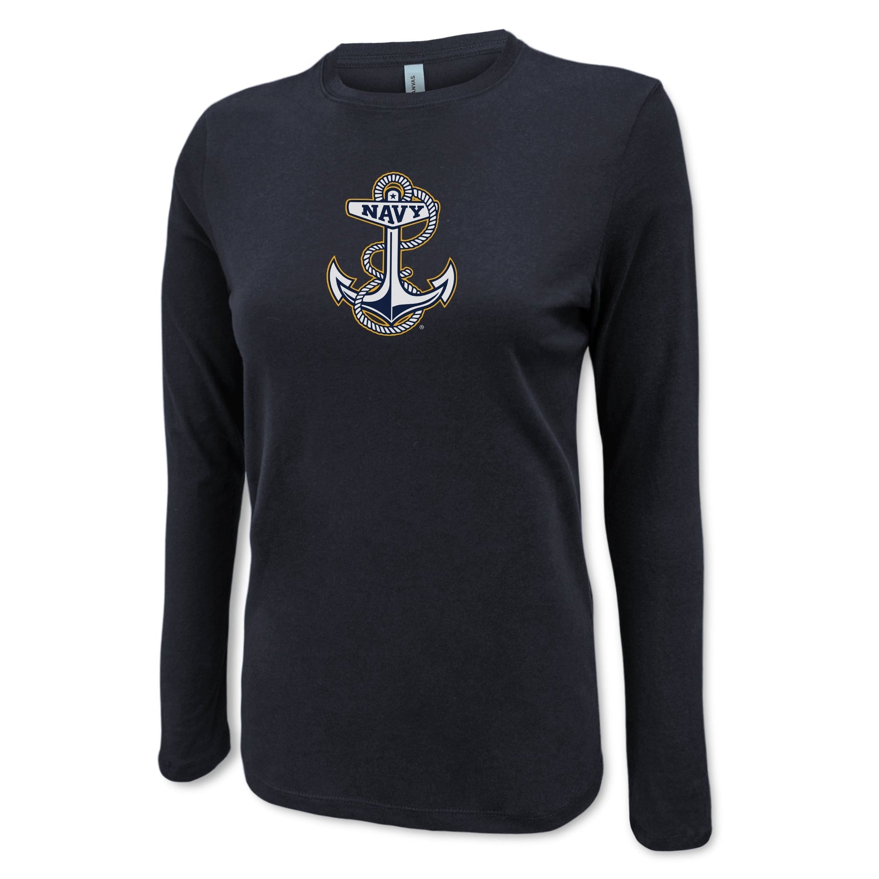 Stay stylishly comfortable with the Navy Anchor Ladies Long Sleeve T-Shirt. Crafted from premium cotton blend fabric, it features the iconic Navy Anchor design, perfect for showcasing your pride and support. Whether you're hitting the gym or running errands, this shirt offers both style and durability for everyday wear!