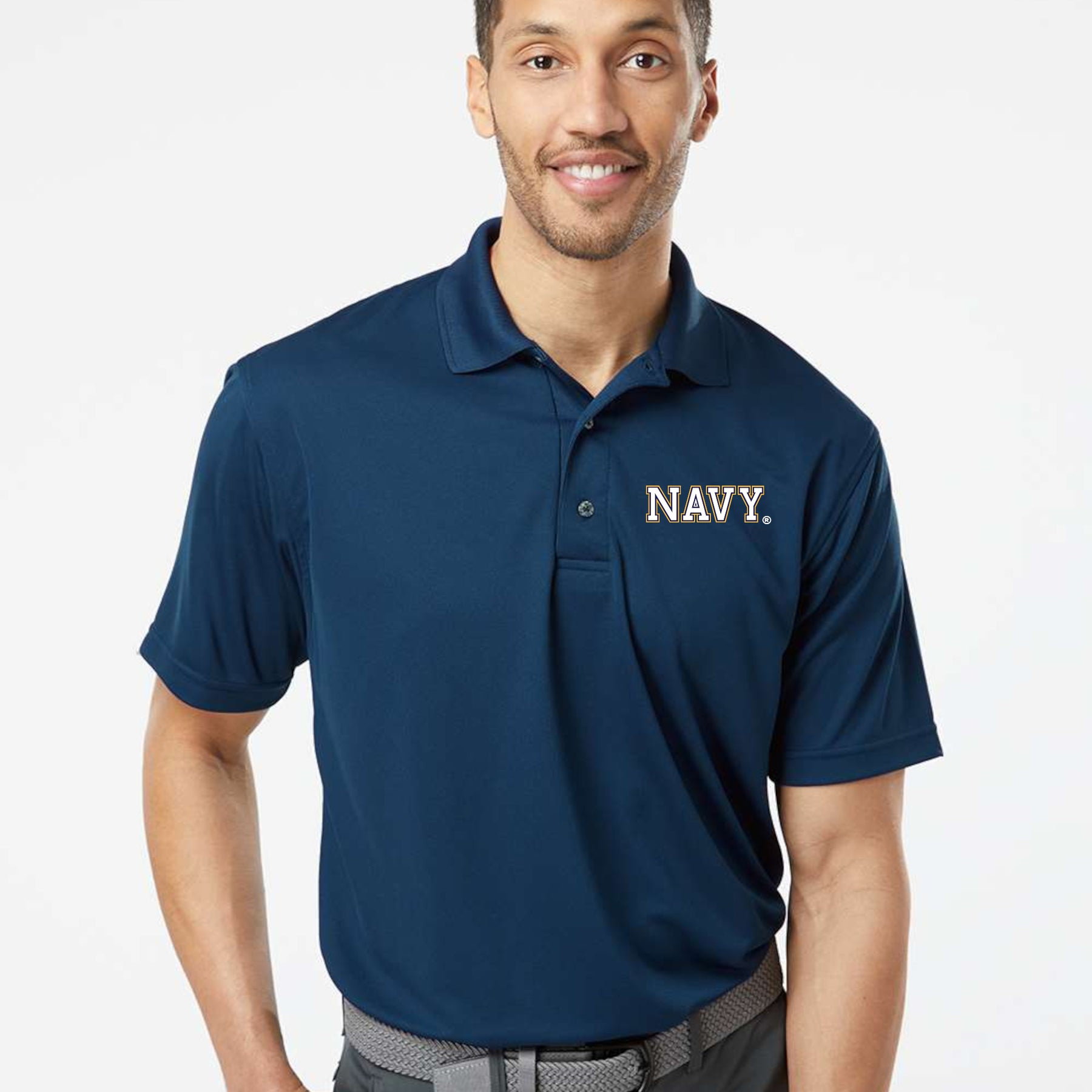 Don't let the heat stop you in your tracks! Whether you are hitting the golf course or going to work, the Navy Performance Polo will keep you cool and dry all while showing your Navy pride!