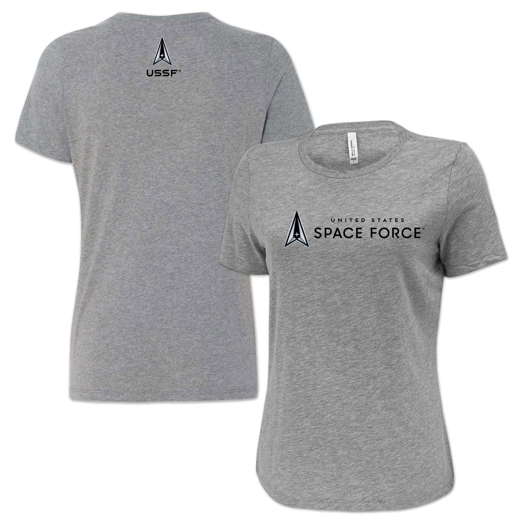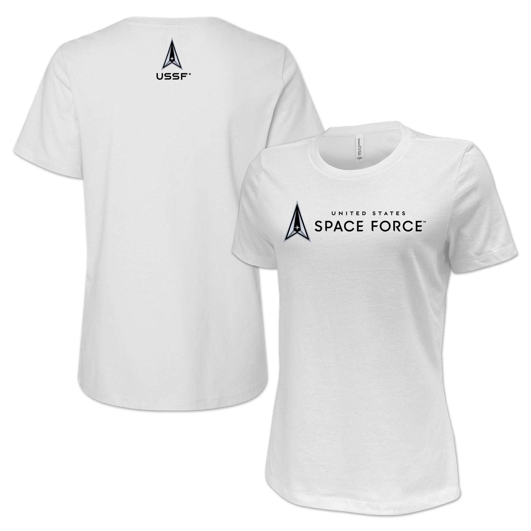 This Space Force Ladies T-Shirt merges two of our most popular designs to create a new must-have tee. Made with premium materials, the Space Force Ladies Two-Sided Tee is a great addition to your Space Force collection!